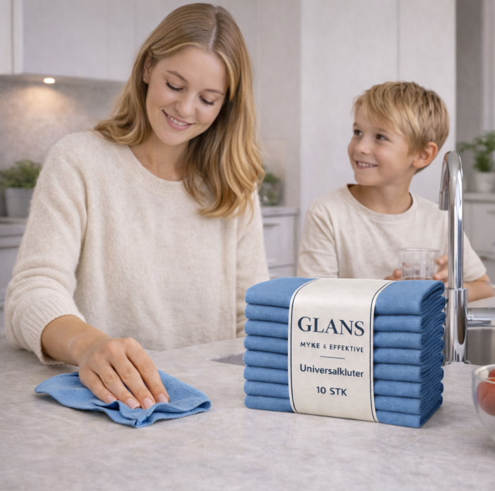 Klutene gir et skinnende rent resultat og kan brukes på de fleste overflater i hjemmet, som kjøkken, bad, bord og glass.